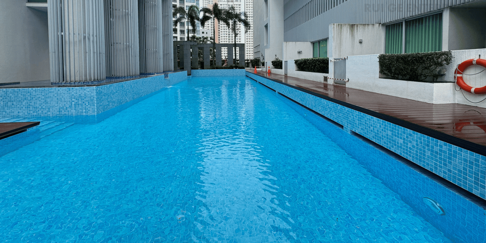 Re-waterproofing and re-tiling works to water features, swimming pool and pool deck at Regency Suites